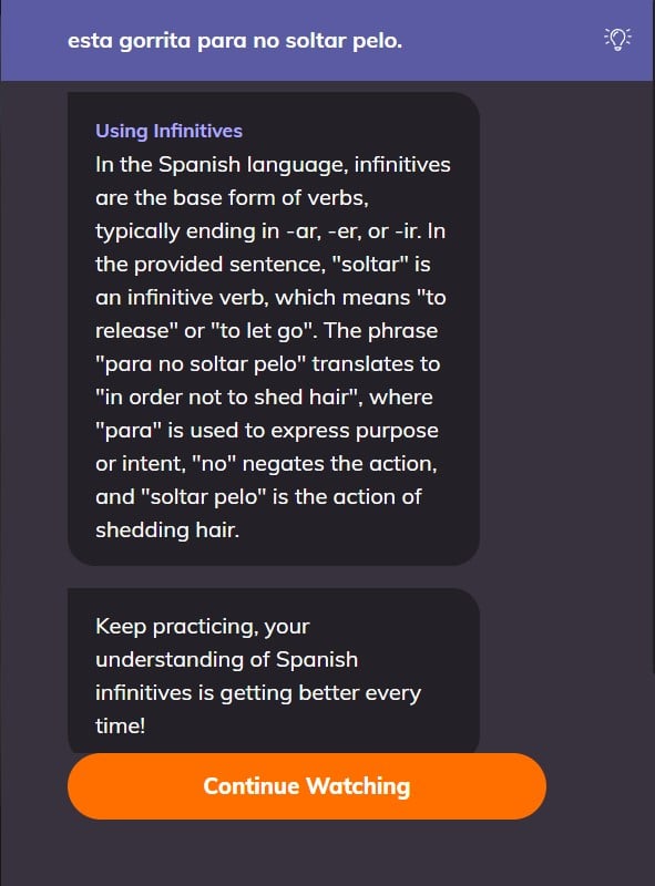 What’s also great about watching shows on Lingopie is that you can pause them and analyze the sentence using their AI tools.
