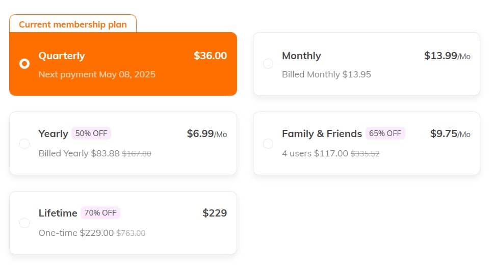 - Yearly for $83.88, which comes out to $6.99 per month (billed annually)